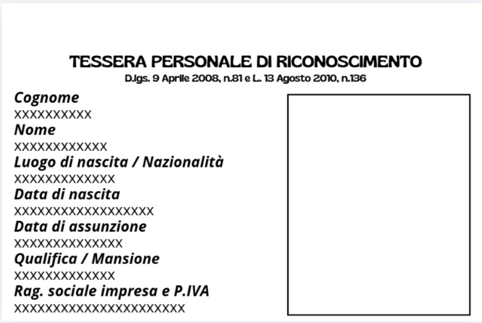 Foto tesserino da allegare*
